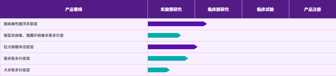根據(jù)市場需求,我們研發(fā)了5款疫苗產(chǎn)品,涵蓋經(jīng)濟(jì)動物和伴侶動物。