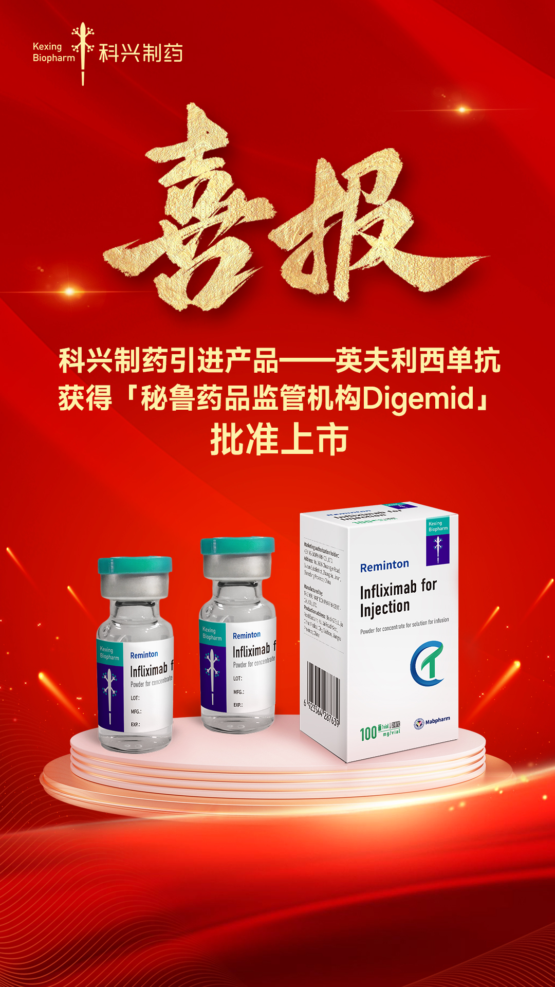 近日,科興制藥(688136.SH)從邁博藥業(yè)引進的產品——注射用英夫利西單抗再傳出海新進展,該產品已正式獲得秘魯藥品監(jiān)管機構Digemid批準上市!