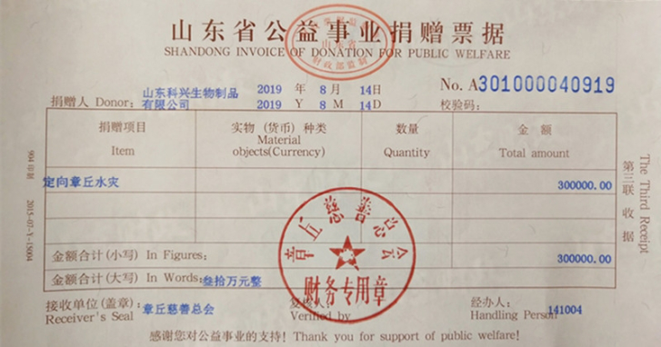 大災顯大愛,大愛救大災。作為根植章丘20余年的本土企業,科興制藥始終秉承“精益制藥、精益用藥、守護健康”的理念,積極承擔社會責任。在災難面前,義不容辭,第一時間捐款救援。